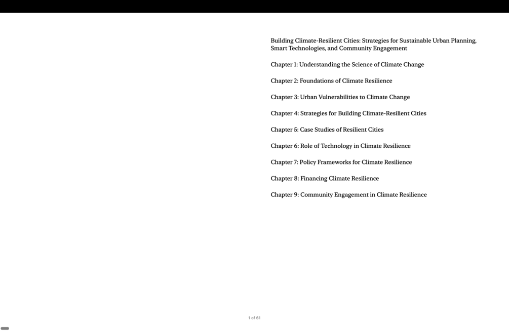 "Building Climate-Resilient Cities: Strategies for Sustainable Urban Planning, Smart Technologies, and Community Engagement" is your ultimate guide to creating resilient urban environments in the face of climate change. Perfect for urban planners, policymakers, and community leaders, this book provides actionable strategies, innovative solutions, and real-world case studies. Learn how to implement holistic resilience planning, utilize smart technologies, and engage communities effectively. Packed with cutting-edge research and practical insights, this comprehensive resource will help you build sustainable and climate-resilient cities for the future. Don't miss out on transforming your urban planning approach to tackle climate challenges head-on.